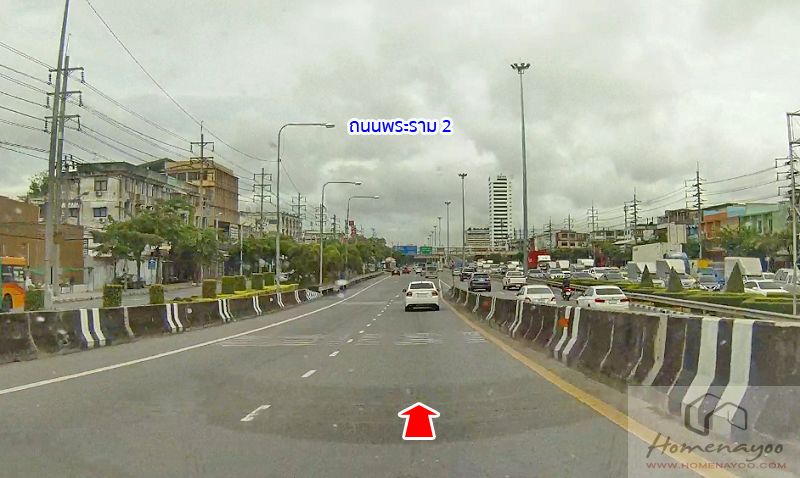 การเดินทางด้วยรถยนต์ส่วนตัว – ถนนหลักที่ใช้งานในชีวิตประจำวันของทำเลนี้คือ ถนนใหญ่พระราม 2 ถนนกว้างขนาดถึง 14 เลน แต่ถึงกระนั้นเรื่องการจราจรในช่วงเร่งด่วนถือว่ามีความหนาแน่นมากทีเดียว สืบเนื่องมาจากองค์ประกอบที่เป็นแหล่งพักอาศัยที่ขยายออกมาจากตัวเมืองชั้นในตามที่ได้เกริ่นไป แต่หากเป็นช่วงเวลาระหว่างวันการจราจรก็จะคลายตัวลงและเดินทางได้อย่างสะดวกมากทีเดียว พร้อมทั้งมีทางเลือกที่หลากหลาย