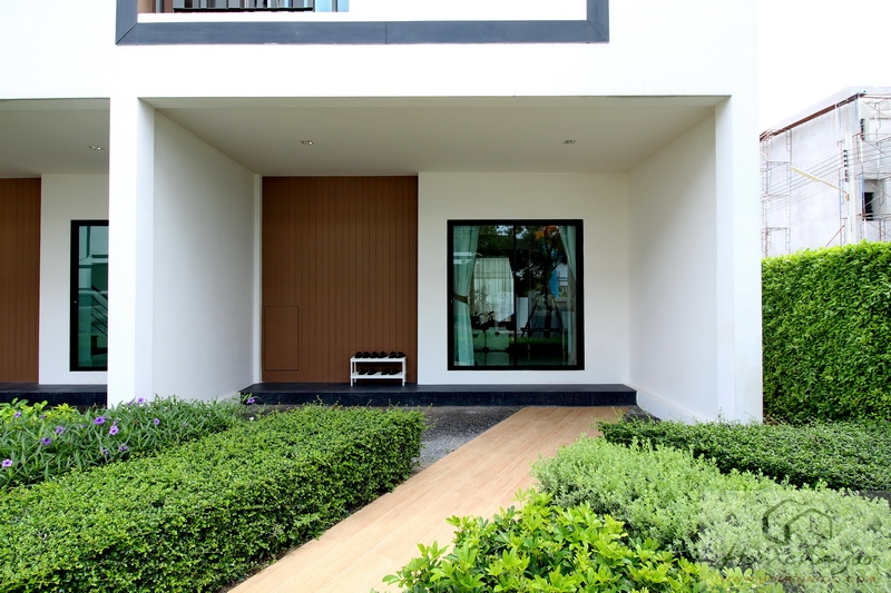 ด้านข้างปูพื้นสวนด้วยหญ้าจริงเป็นมาตรฐาน