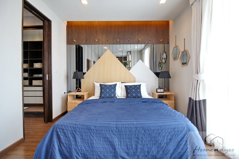 ส่วนพักผ่อนวางเตียง 5 ฟุต ด้านซ้ายของเตียงเป็นช่องทางเดินสำหรับทำ walk-in closet