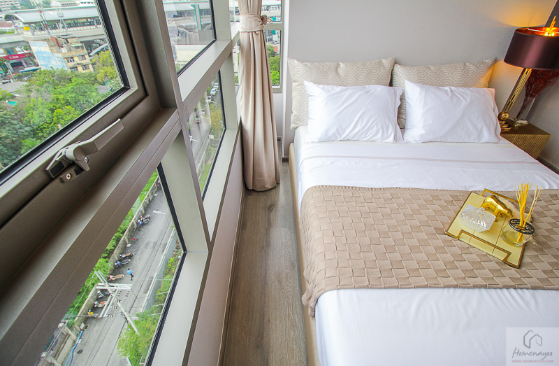 ภายในห้องนอนมีหน้าต่างบานกระทุ้ง 1 บาน ที่เหลือเป็นบาน Fixed ให้มาบานใหญ่ดีแต่เฟรมเยอะไปหน่อย
