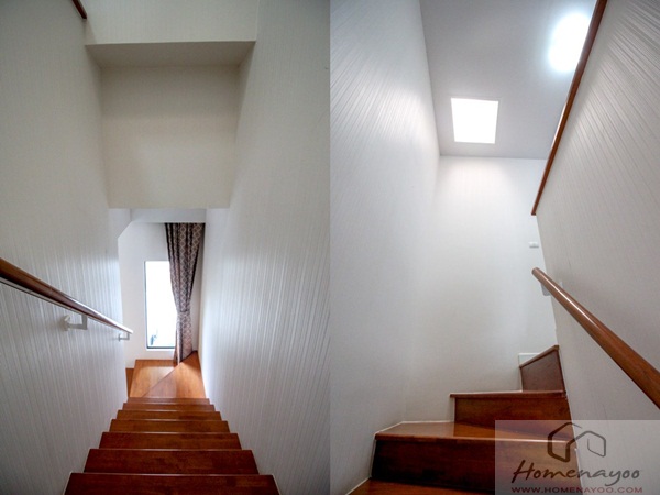 ด้านบนของโถงบันไดมีไฟซาลาเปาติดให้ 1 ดวง พร้อมช่องแสงธรรมชาติจากหลังคา