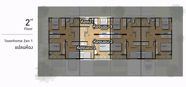 ทาวน์โฮม Zen 2 มีพื้นที่ใช้สอย 117 ตร.ม. 3 ห้องนอน 2 ห้องน้ำ 2 ที่จอดรถ ที่ดินแปลงมาตรฐานอยู่ที่ 20 ตร.ว. หน้ากว้าง 5.65 เมตร เท่ากับแบบ Zen 1 แต่พื้นที่ใช้สอยที่เพิ่มมาขึ้นนั้นได้มาจากความลึกของตัวบ้านที่มากขึ้น ทำให้มีการจัดสรรพื้นที่ให้เราได้ที่จอดรถเป็น 2 คันค่ะ ส่วนฟังก์ชั่นโดยรวมของตัวบ้านยังคงเหมือนเดิม แต่อาจจะเปลี่ยนตำแหน่งการจัดวางนิดหน่อย ดูจากแปลนเมื่อเราเข้าไปในตัวบ้านจะเจอห้องทานอาหารก่อนส่วนห้องรับแขกจะอยู่ทางซ้ายมือ เราจะได้พื้นที่ส่วนห้องทางอาหารมากขึ้นให้จัดวางเป็น Pantry ได้ หรืออาจจะทำเป็นครัวปิดเลยก็ยังได้ค่ะ ส่วนของห้องน้ำ, บันได, ครัวไทยและลานซักล้างยังคงอยู่ตำแหน่งเดิม