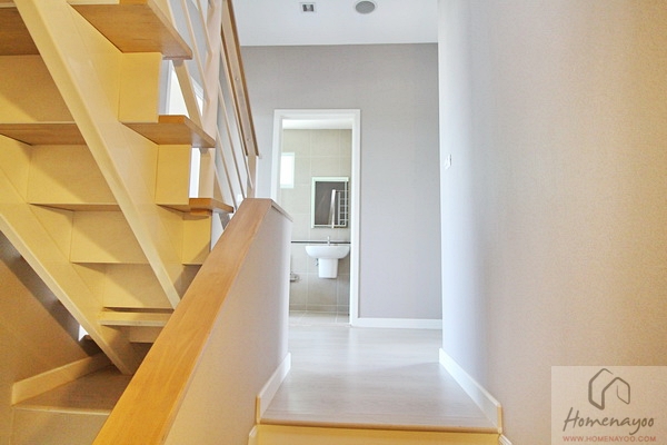 ชั้นบนเป็นห้องนอน 3 ห้อง ห้องน้ำ 1 ห้อง พื้นเป็นลามิเนตโทนสีน้ำตาล