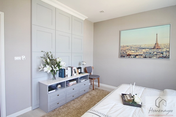 ปลายเตียงจะเป็นตำแหน่งของตู้เสื้อผ้าและโต๊ะเครื่องแป้ง