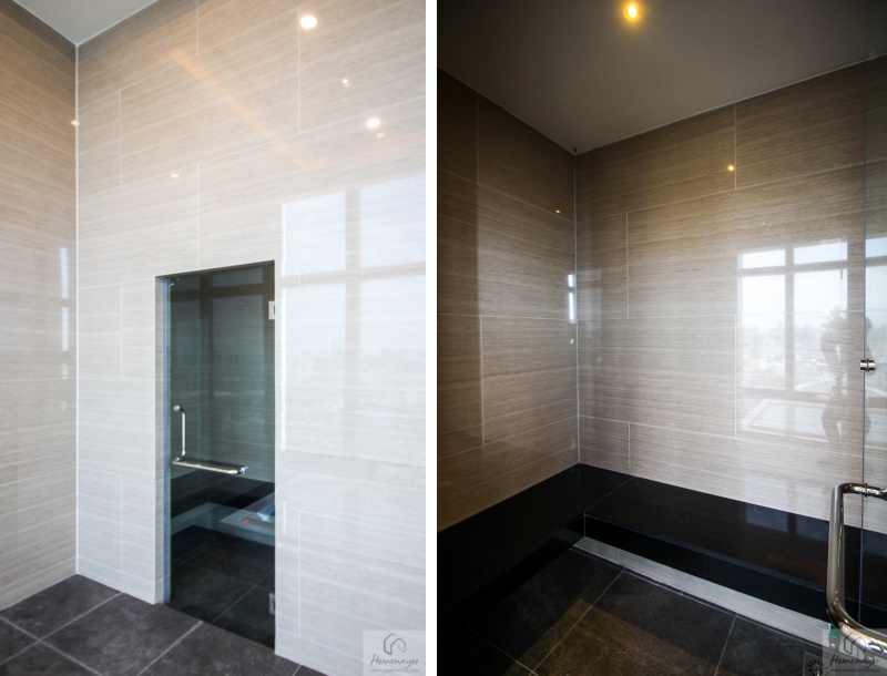 ภายในห้องน้ำจะแบ่งส่วนเปียส่วนแห้ง ตกแต่งพื้นและผนังด้วยกระเบื้องเซรามิก ห้องน้ำดูสว่าง พร้อมติดตั้งพัดลมดูดอากาศที่ทำงานร่วมกับระบบ Thermostat ช่วยให้อากาศไหลเวียนได้ดีและช่วยคงอุณหภูมิได้อีกด้วย