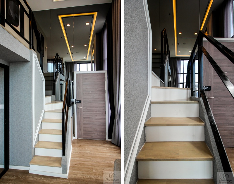 บันไดเดินขึ้นชั้นลอย อยู่ติดประตูห้อง