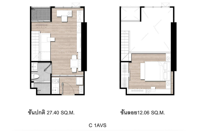 วันนี้เรามีห้องตัวอย่างมาให้ชม 2 แบบ เป็นห้อง 1 Bedroom ขนาด 27.40 ตร.ม. และ 2 Bedroom Vertical Suite ขนาด 35.54 ตร.ม.(และชั้นลอย 16.71 ตร.ม.)