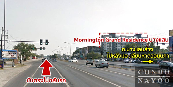 ผ่านแยก ถ.บางแสนล่าง ถัดไปหน่อยเราจะเห็นตัวโครงการ Mornington Grand Residence บางแสน จากนั้นให้ตรงไปกลับรถค่ะ