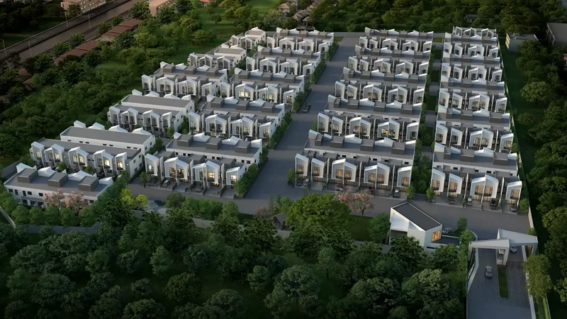 ภาพและบรรยากาศจำลองภาพมุมสูงโครงการ Moti Town สุขุมวิท-แพรกษา