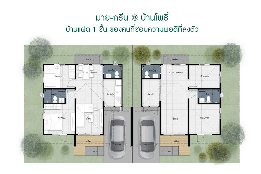 โครงการ My Green @บ้านโพธิ์ ฉะเชิงเทรา มีแบบบ้านให้เลือกทั้งหมด 2 แบบ ดังนี้