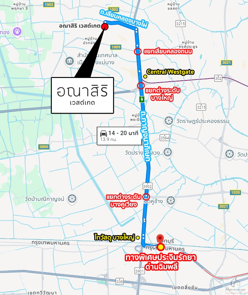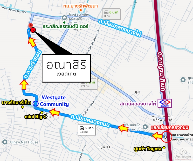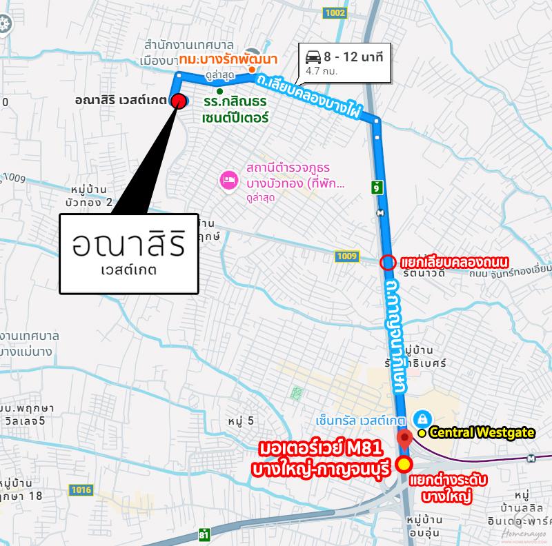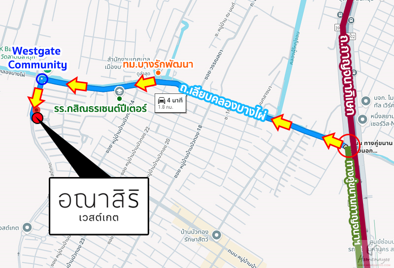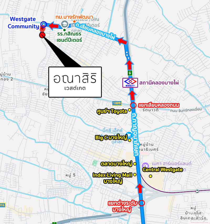 📍 ทำเลศักยภาพตั้งอยู่บนถนนเลียบคลองบางไผ่ใกล้ถนนกาญจนาภิเษก ภายในอาณาจักรที่ชื่อว่า “Westgate Community” เข้า-ออกโครงการได้ 2 เส้นทาง ทั้งจากเส้นเลียบคลองบางไผ่และเลียบคลองถนน