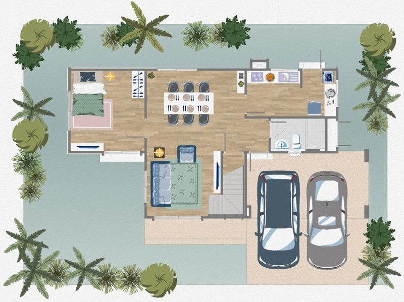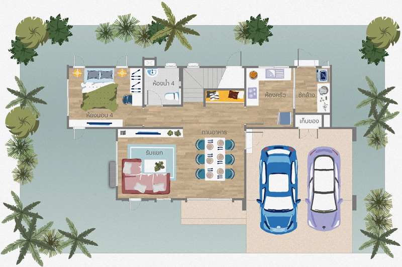 ☀️ ตกแต่ง Facade ด้วยโทนสีสันสดใสในบางส่วน ออกแบบมาเพื่อวิถีชีวิตยุคใหม่ปรับเปลี่ยนได้ตามการใช้งาน ฟังก์ชันเริ่มต้น 4 ห้องนอน พร้อมห้องนอนชั้นล่าง และที่จอดรถ 2 คันทุกแบบบ้าน