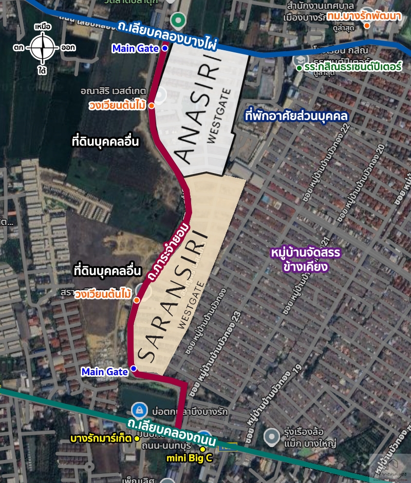 📌 Main Gate มีมาให้ถึง 3 จุด คือ ฝั่งถนนเลียบคลองบางไผ่, เลียบคลองถนน และที่ตั้งของตัวโครงการ