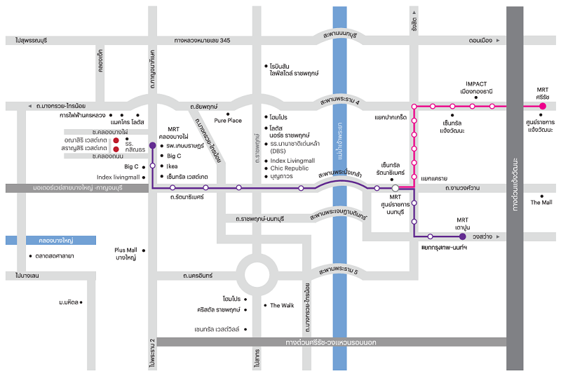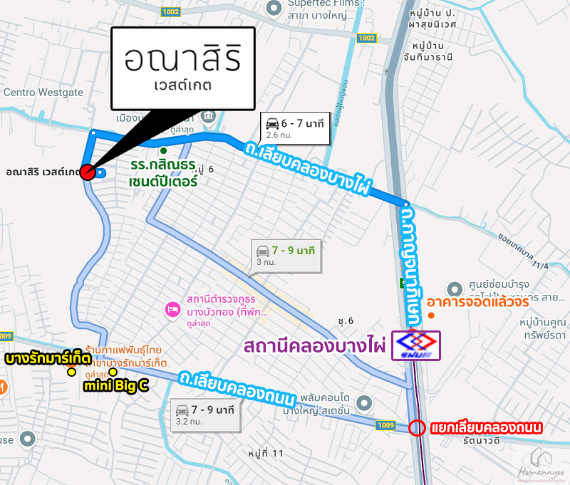 🚅 อยู่ไม่ไกลจากรถไฟฟ้า MRT สายสีม่วง สถานีคลองบางไผ่ บริเวณนี้จะมีอาคารจอดแล้วจรให้บริการ สามารถ Interchange ไปสายสีชมพูได้ที่สถานีศูนย์ราชการนนทบุรี, สายสีแดงที่สถานีบางซ่อน และสายสีน้ำเงินที่สถานีเตาปูน