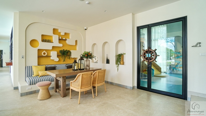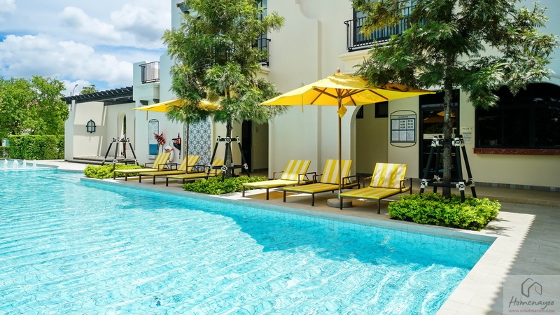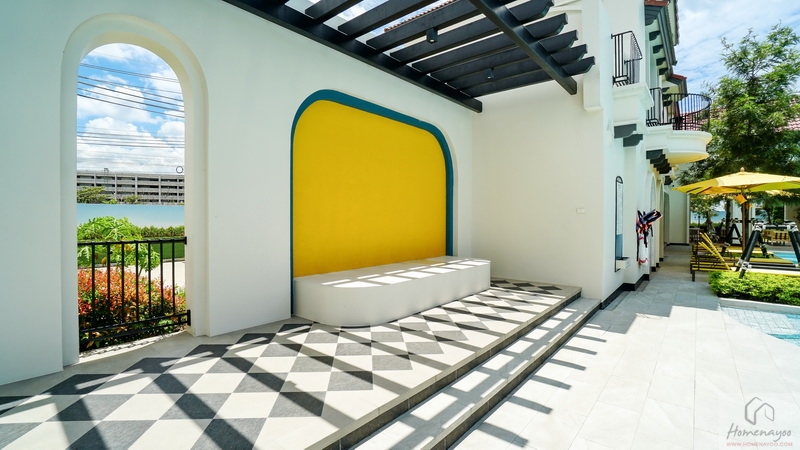 🏊 ภายในโครงการมี Clubhouse เป็นอาคาร 2 ชั้น ออกแบบมาสไตล์เมดิเตอร์เรเนียน แบ่งฟังก์ชันไว้เป็นสัดส่วน สระว่ายน้ำระบบเกลือขนาด Half Olympic แยกสระเด็ก-ผู้ใหญ่, Co-Working Space พื้นที่นั่งเล่นพักผ่อนหรือทำงาน