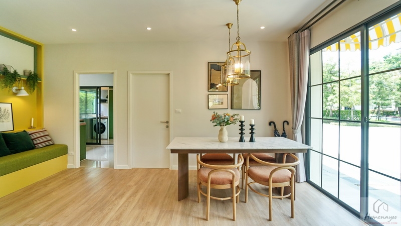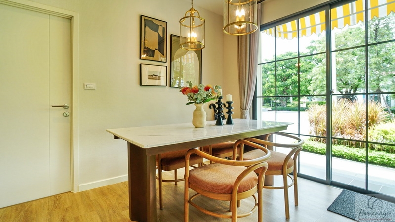 ติดกับประตูทางเข้าบ้านจัดเป็น Dining Area วางชุดโต๊ะรับประทานอาหารขนาด 4 ที่นั่งได้ลงตัว