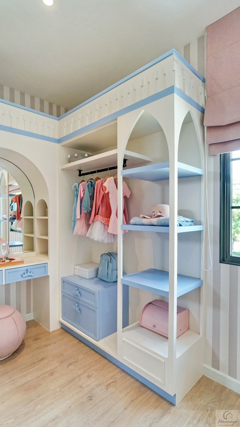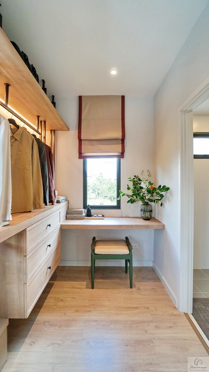 Walk-in Closet สามารถ Built-in ตู้เสื้อผ้าขนาดกลาง-ใหญ่ หรือรองรับเฟอร์นิเจอร์ลอยตัวได้ตามต้องการ