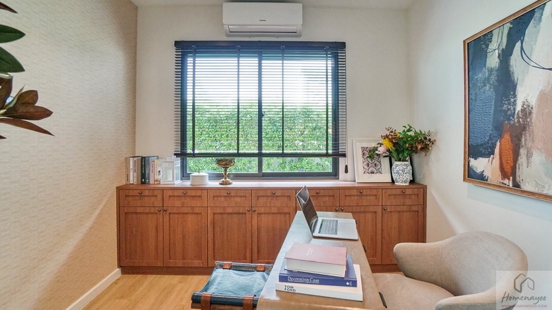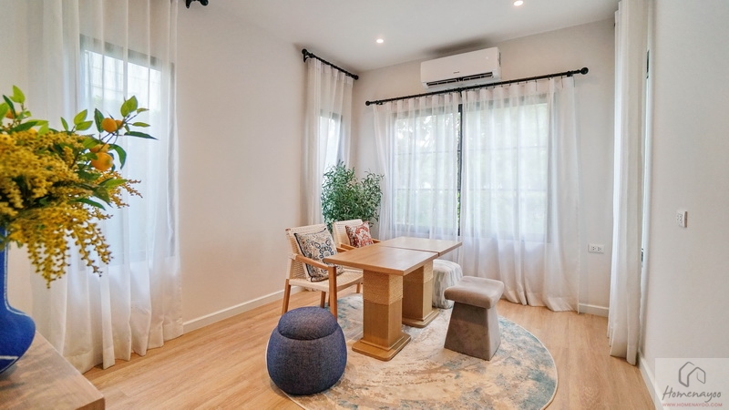 ถัดมาใกล้กับ Dining Area คือพื้นที่อเนกประสงค์ที่ปรับเปลี่ยนฟังก์ชันการใช้งานได้ตามไลฟ์สไตล์ของแต่ละบ้าน ส่วนบ้านตัวอย่างจัดเป็นมุมนั่งเล่นพักผ่อนสบาย ๆ ให้ดูเป็นไอเดีย