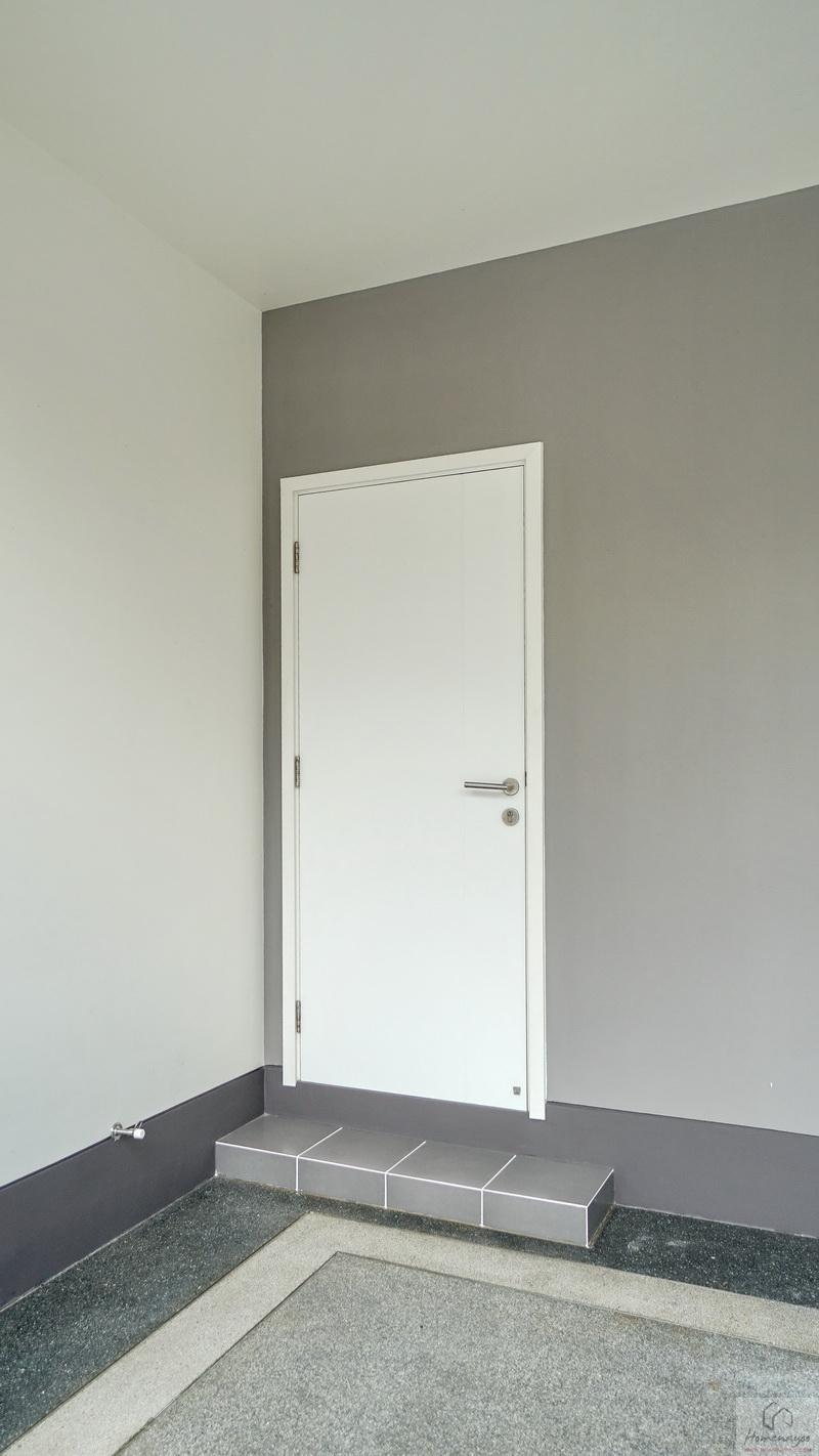 มาดูในส่วนของห้องครัวไทยกันบ้าง บ้านมาตรฐานได้ประตู UPVC บานปิดมิดชิดเป็นสัดส่วน ป้องกันกลิ่นและควันไม่ให้คลุ้งเข้าไปยังโซนพักผ่อนด้านใน