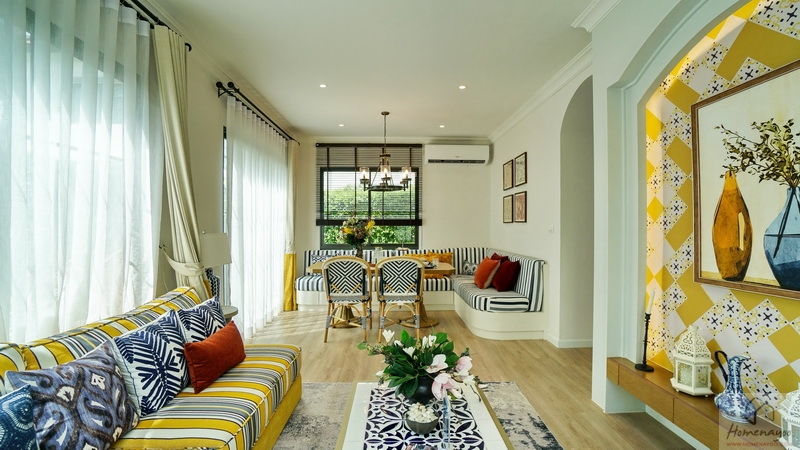อีกฝั่งจะเป็น Living Area มุมนั่งเล่นพักผ่อนขนาดกว้างขวาง จัดวางชุดโซฟาขนาดใหญ่ได้ทั้งแบบ I-Shape หรือ L-Shape พร้อมเพิ่ม Armchair, สตูล และโต๊ะกลางขนาดกะทัดรัดได้อีก จุดนี้โปร่งโล่งมากเป็นพิเศษมีช่องแสงมาให้รอบด้าน