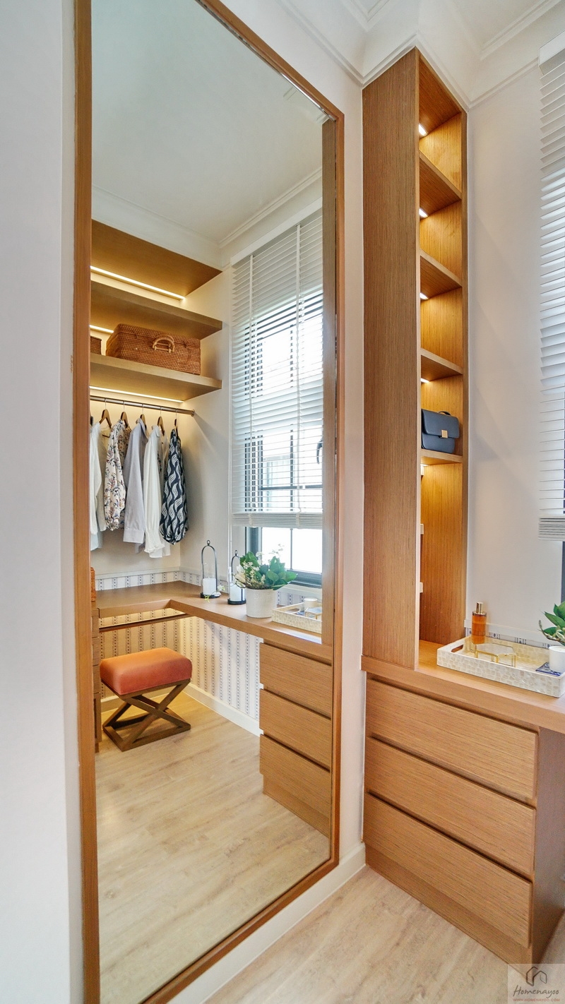ตรงกลางจัดเป็นมุมโต๊ะเครื่องแป้งขนาดมาตรฐาน พร้อมมีหน้าต่างเป็นช่องรับแสงมาให้อีก 1 ชุด