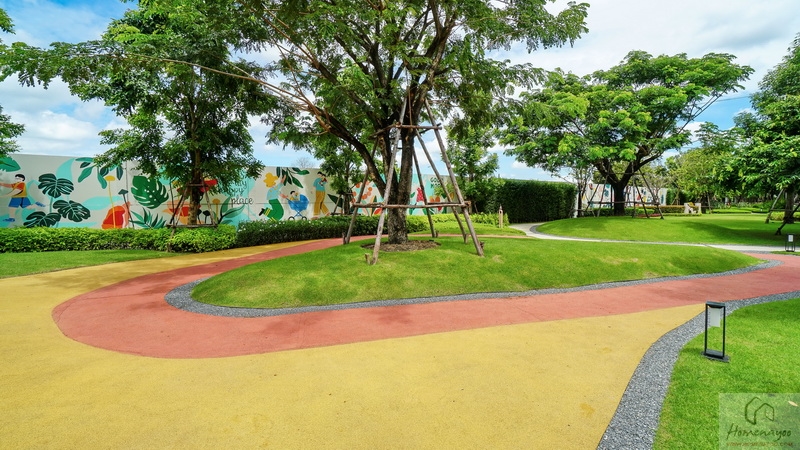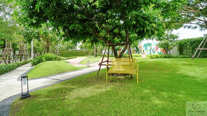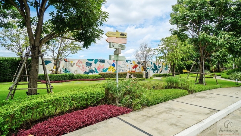 มุมนั่งเล่นพักผ่อนท่ามกลางธรรมชาติสุดร่มรื่น, Pet Park สำหรับสัตว์เลี้ยงตัวโปรดโดยเฉพาะ, Bike Kids Park สนามปั่นจักรยานสำหรับเด็ก ๆ, Jogging Track เชื่อมต่อรอบสวน และ Parking ที่จอดรถสำหรับลูกบ้านที่มาใช้งานส่วนกลาง จุดนี้มีค่าดูแลพื้นที่ส่วนกลางและถนนภาระจำยอม 5 บาท/ตร.ว./เดือน
