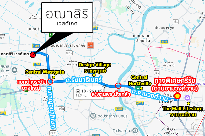 นอกจากนี้ยังอยู่ไม่ไกลจากทางพิเศษศรีรัช ด่านงามวงศ์วาน ที่ขับรถจากโครงการไปประมาณ 18.3 กม.* หรือใช้เวลาราว ๆ 18-26 นาที* เหมาะกับการใช้ออกนอกเมืองไปทางรังสิต, บางปะอิน, อยุธยา หรือเข้าเมืองไปฝั่งบางซื่อ, ประชาชื่น, จตุจักร, อนุสาวรีย์ฯ, ปทุมวัน, หัวลำโพง และย่าน CBD กรุงเทพฯ