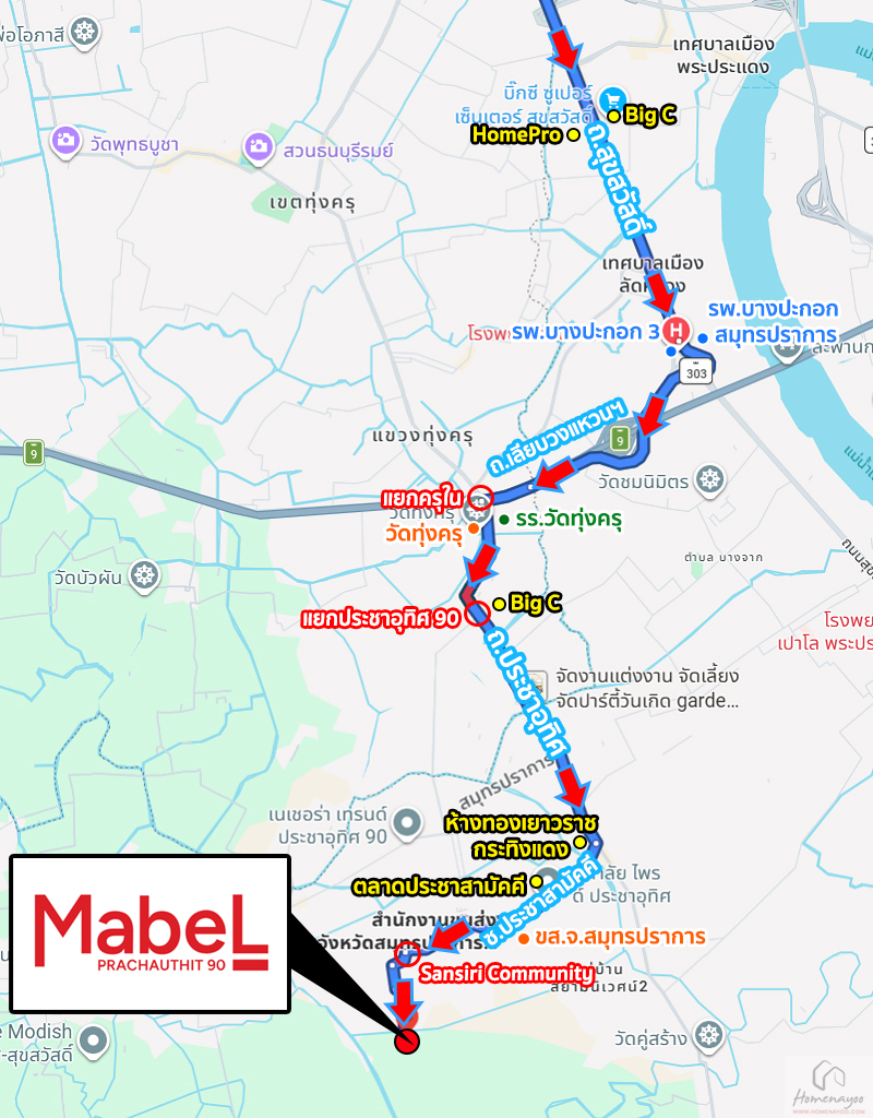 เมเบิล ประชาอุทิศ 90 ตั้งอยู่ภายในสังคมคุณภาพ Sansiri Community ประชาอุทิศ 90 เข้า-ออกได้ทั้งจากซอยประชาอุทิศ 90 และซอยประชาสามัคคี (ซอยกระทิงแดง) บนทำเลที่สะดวกสบายมากกว่าใคร เข้าสู่ย่าน CBD พระราม 3-สาทรได้ง่าย ๆ เชื่อมต่อถนนหลักและรองได้หลายเส้น เช่น ถนนประชาอุทิศ, สุขสวัสดิ์, ครุใน, พุทธบูชา, พระราม 2, พระราม 3 เป็นต้น