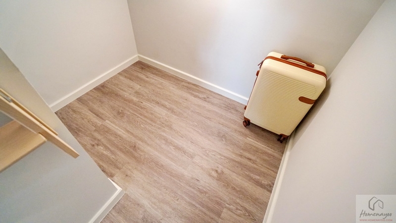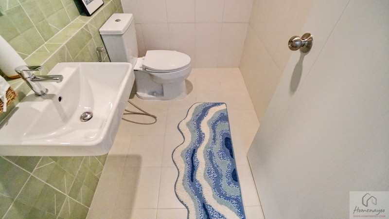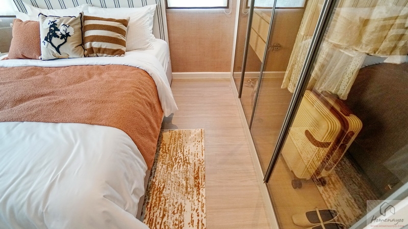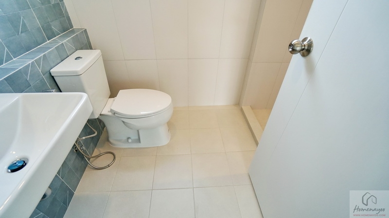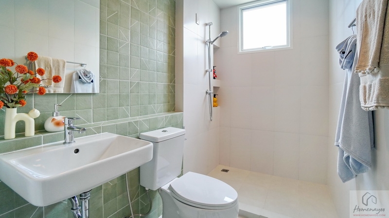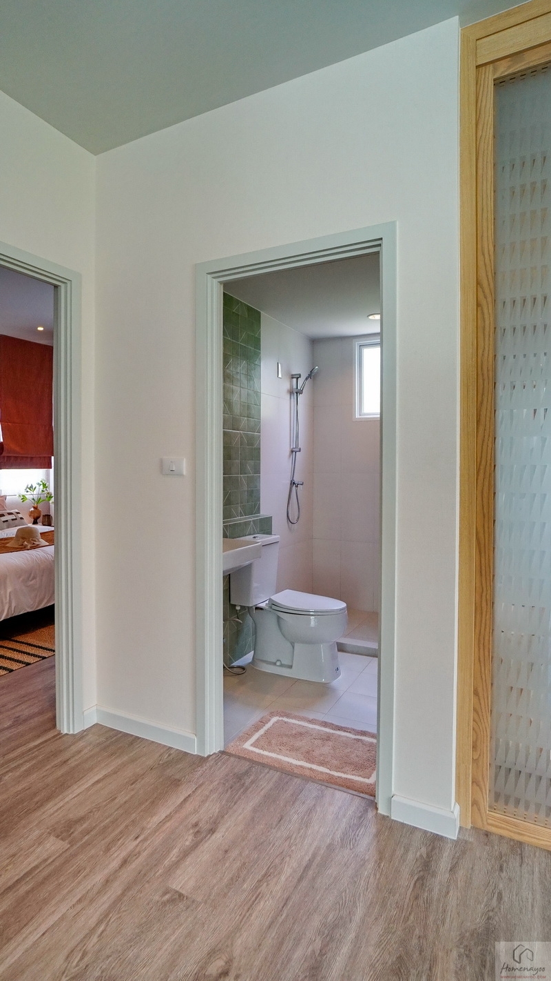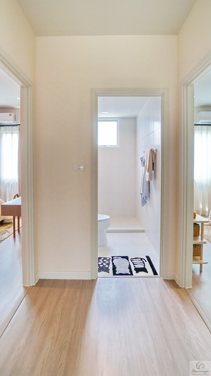 ขณะที่บริเวณด้านหน้าห้องน้ำในตัวก็มีพื้นที่เข้ามุมให้วางตู้เสื้อผ้าได้อีก