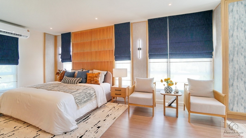 ภายในขนาดกว้างจัดวางเฟอร์นิเจอร์ต่าง ๆ ได้ครบครัน มีพื้นที่ให้จัดโซน Walk-in Closet และมีห้องน้ำในตัว เน้นช่องแสงบานผสมขนาดใหญ่ให้หลายจุด ช่วยรับแสงธรรมชาติเข้าสู่ตัวห้องได้เยอะ หรือจะเปิดระบายอากาศก็ตอบโจทย์