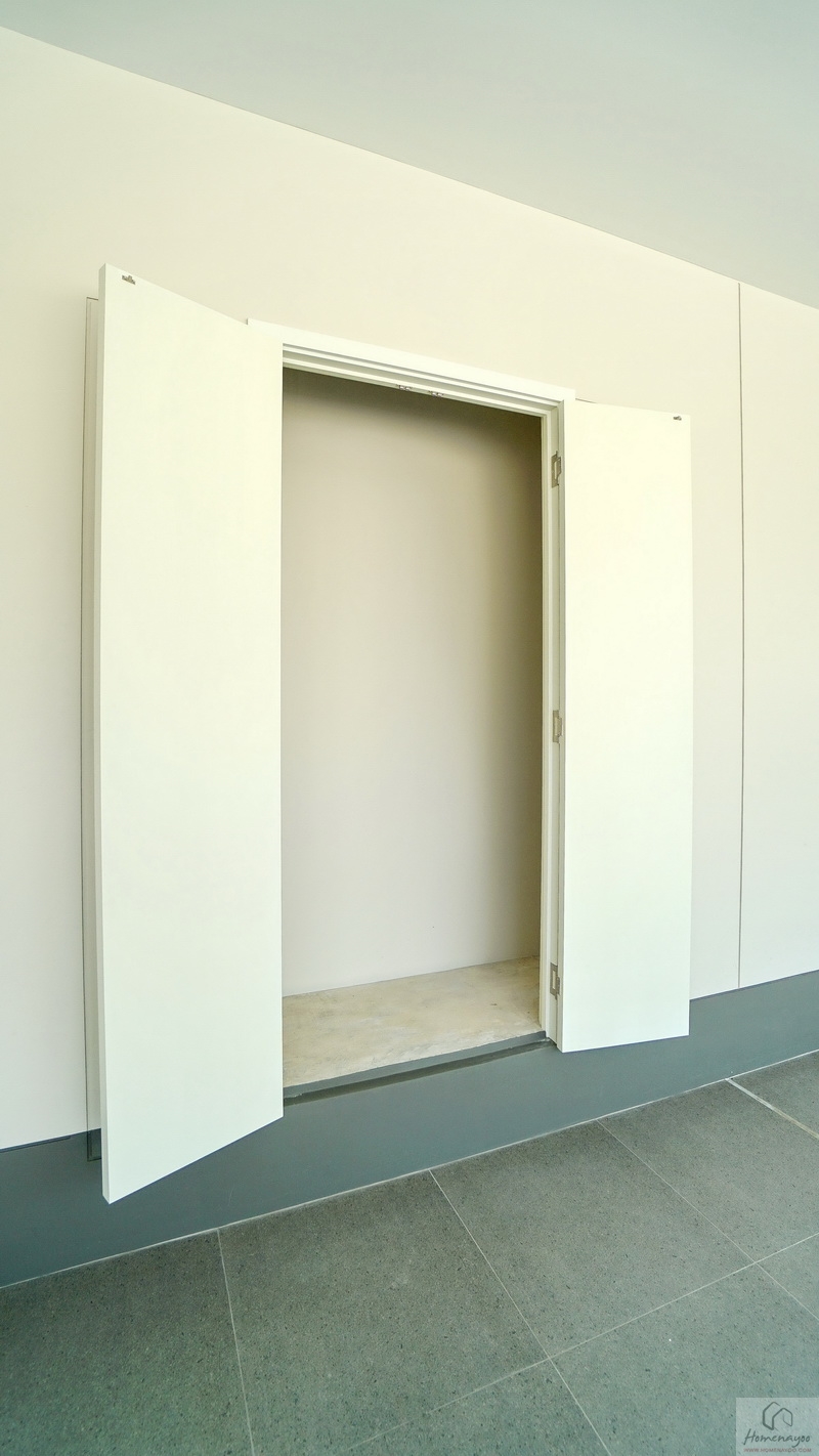 ใกล้กันคือห้องเก็บของประตูเปิดบานคู่ ด้านในใช้เก็บพวกอุปกรณ์ล้างรถ, อุปกรณ์ทำความสะอาด หรือของใช้ภายนอกได้อย่างเป็นระเบียบ