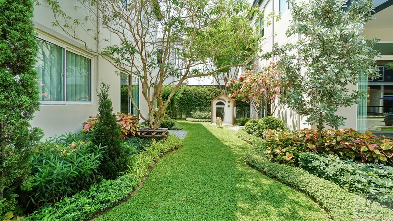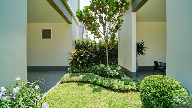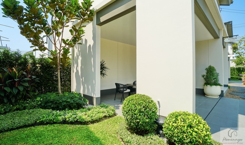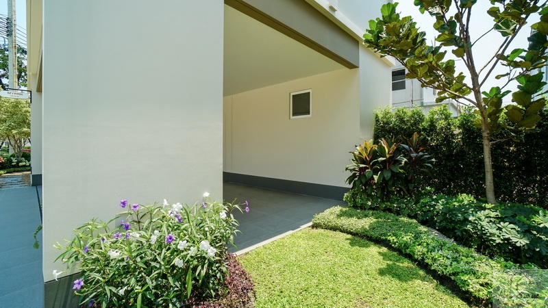 ด้านข้างผนังตัด Joint ให้เดินเชื่อมไปยังสวนและประตูทางเข้าหลักใต้ชายคา