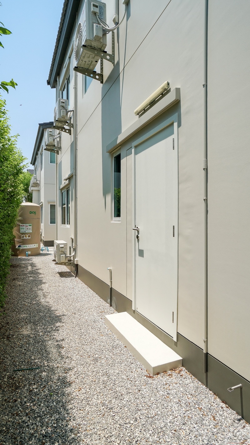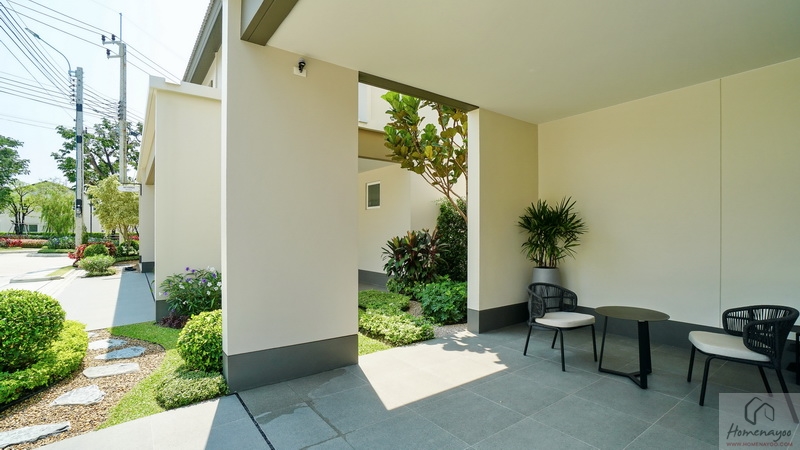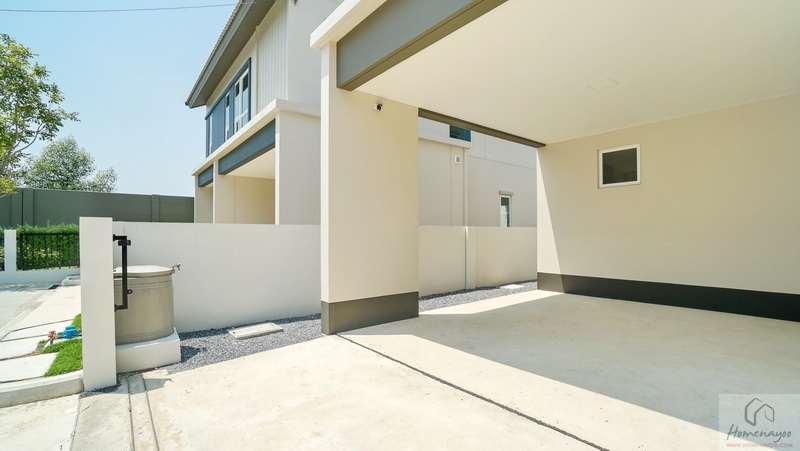 มุมมองหน้าบ้านมาตรฐานทั้ง 2 ฝั่ง จะเห็นได้ว่ามีพื้นที่ให้เดินเชื่อมต่อกันได้รอบตัวบ้านเลย