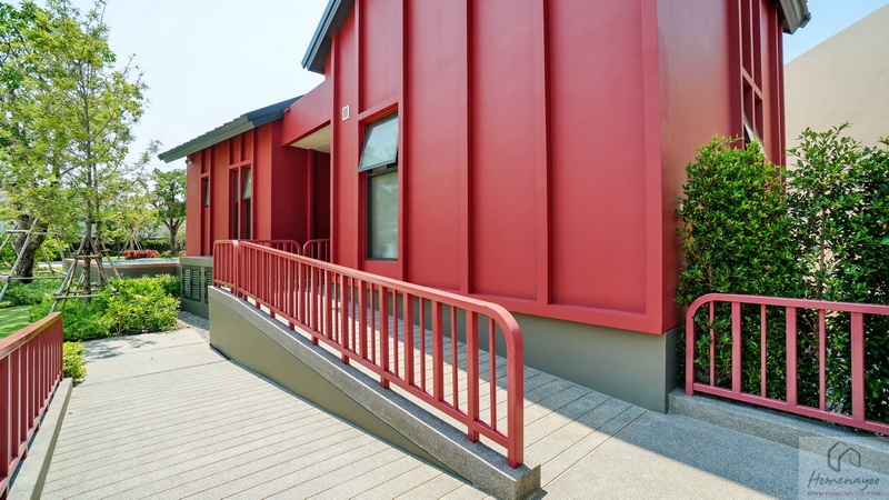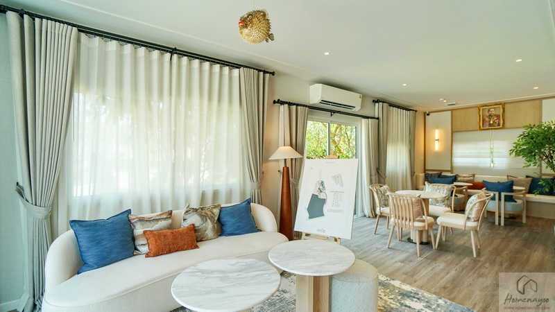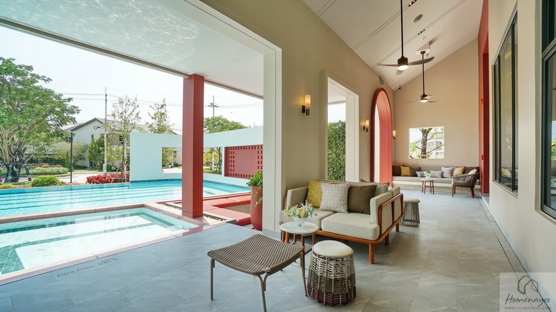 ส่วนภายในโครงการมีอาคาร Clubhouse สไตล์ Minimal Japandi เป็นอาคารชั้นเดียวที่ตกแต่งมาในโทนสีขาว-ครีมตัดด้วยสีแดงอิฐดูโดดเด่น พื้นที่ใช้งานแบบ Semi-Outdoor โปร่ง โล่ง เชื่อมต่อกับธรรมชาติได้ดี แบ่งฟังก์ชันการใช้งานไว้เป็นสัดส่วน