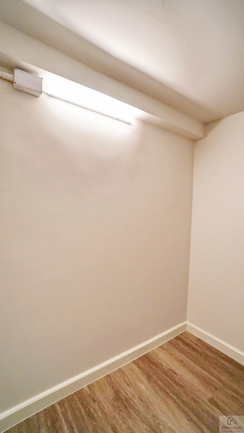 มาดูฝั่งห้องน้ำกันบ้าง ด้านหน้ามีพื้นที่เข้ามุมเหลือกว้างพอสมควร หากจัดเป็นห้องนอนบริเวณนี้เหมาะวางตู้เสื้อผ้าชิดผนังมาก ๆ เลย