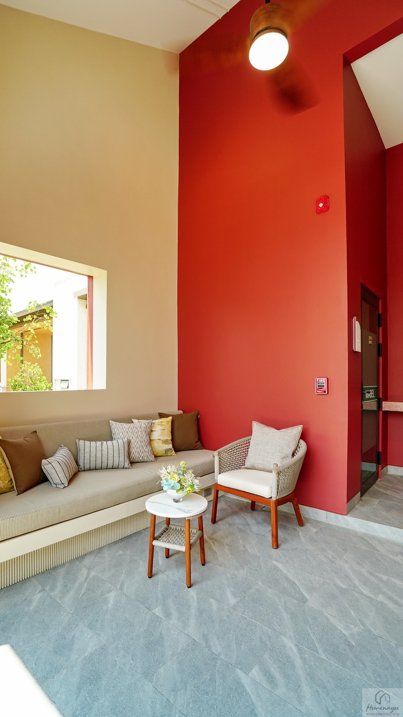 🎪 ภายในโครงการมีอาคาร Clubhouse สไตล์ Minimal Japandi เป็นอาคารชั้นเดียวที่ตกแต่งมาในโทนสีขาว-ครีมตัดด้วยสีแดงอิฐดูโดดเด่น พื้นที่ใช้งานแบบ Semi-Outdoor โปร่ง โล่ง เชื่อมต่อกับธรรมชาติได้ดี แบ่งฟังก์ชันการใช้งานไว้เป็นสัดส่วน