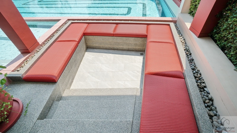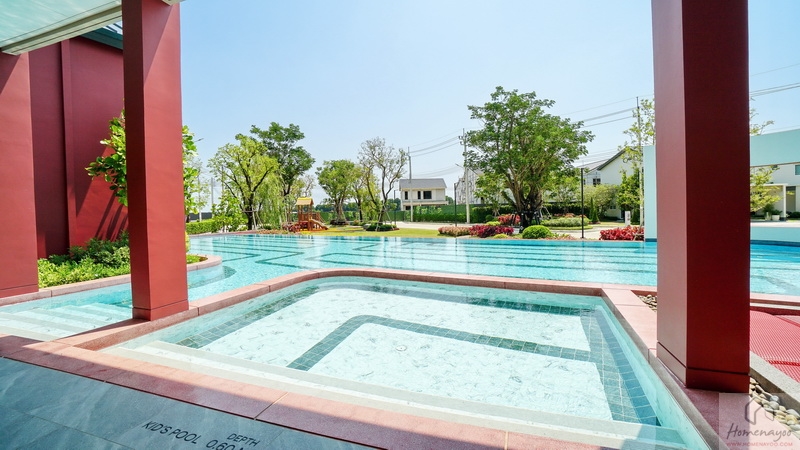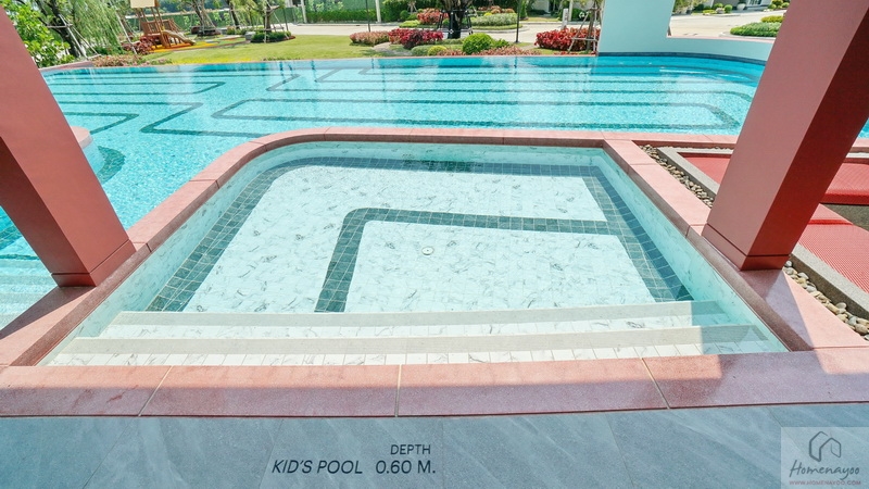 🏊 สระว่ายน้ำระบบเกลือขนาดใหญ่ ดีไซน์แยกสระเด็ก-ผู้ใหญ่, ที่นั่งเล่นพักผ่อนริมสระต่างระดับแบบ Sunken Seat