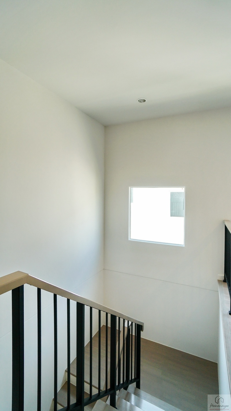 ระหว่างโถงบันไดมีช่องแสงบานฟิกซ์รับแสงธรรมชาติบานใหญ่ให้ 1 ชุด