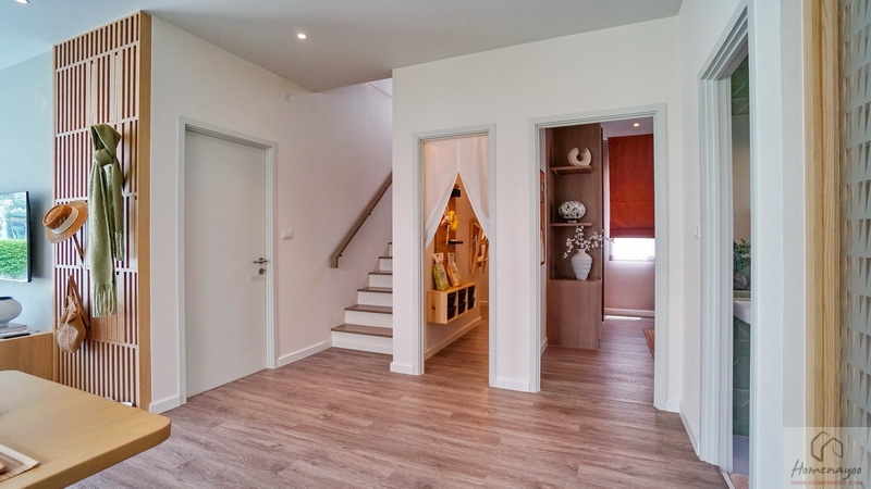 ภายใน Space แบบ Open Plan เชื่อมต่อทุกฟังก์ชันถึงกันได้ทุกส่วน, มีห้องเก็บของใต้บันไดขนาดใหญ่, พื้นที่ครัวแยกเป็นสัดส่วน, เน้นช่องแสงบานใหญ่เปิดรับแสงธรรมชาติเข้าสู่ตัวบ้านได้ดี, ฟังก์ชันรองรับครอบครัวเริ่มต้น-ขนาดใหญ่, มีพื้นที่ให้จัดเป็นสวนได้รอบตัวบ้าน, ชั้นล่างปูพื้น SPC, ชั้นบนปูพื้นลามิเนต, บันไดโครงสร้างคอนกรีตเสริมเหล็ก เป็นต้น