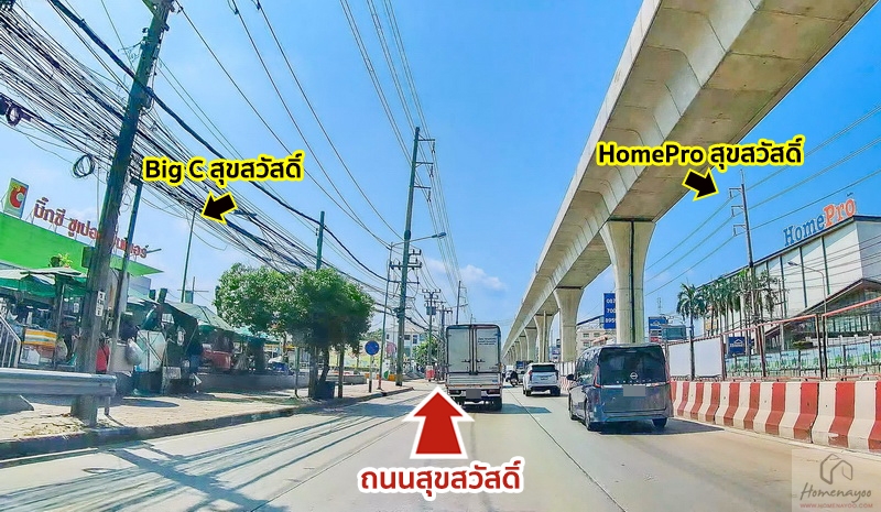 จากถนนสุขสวัสดิ์วิ่งไปได้ทั้งฝั่งพระสมุทรเจดีย์ ส่วนอีกฝั่งจะไปทางวงแหวนกาญจนาภิเษก, วงแหวนอุตสาหกรรม, ราษฎร์บูรณะ, บางปะกอก, ดาวคะนอง, พระราม 2 หากต้องการเดินทางเข้าเมืองไปย่าน CBD พระราม 3-สาทร ก็ใช้วงแหวนอุตสาหกรรมข้ามสะพานภูมิพล 1 ไปลงพระราม 3 ได้สะดวก