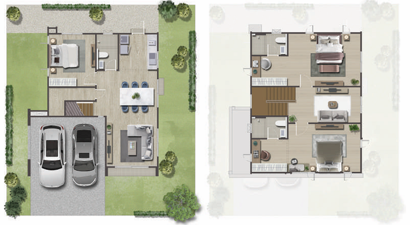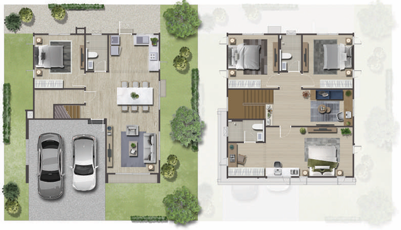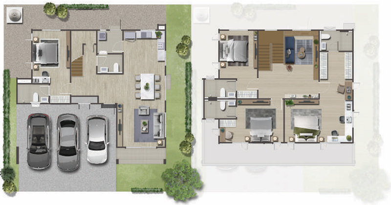 🟢 แบบบ้าน Cedar พื้นที่ใช้สอย 174 ตร.ม. ฟังก์ชัน 3 ห้องนอน, 3 ห้องน้ำ, 2 ที่จอดรถ