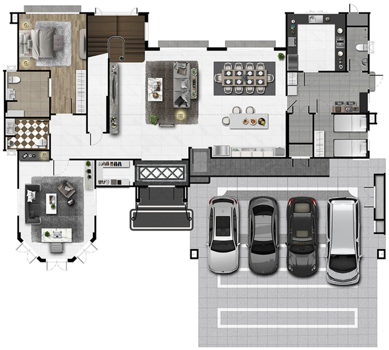 ⭐ แบบบ้าน NoHo No.5 พื้นที่ใช้สอย 540 ตร.ม. ฟังก์ชัน 4 ห้องนอน, 5 ห้องน้ำ, ห้องแม่บ้าน, ที่จอดรถ 4 คัน