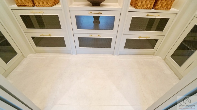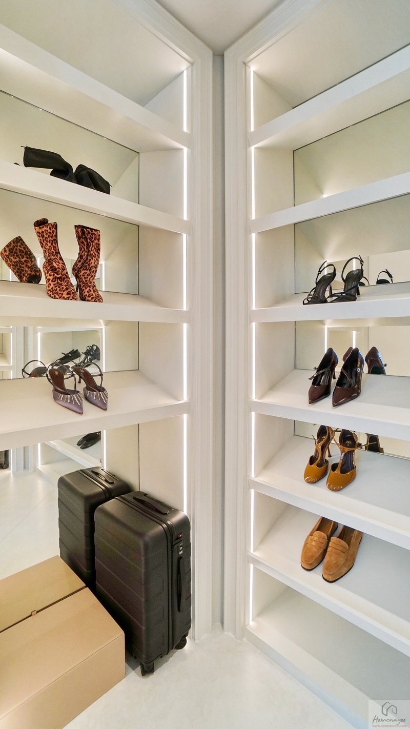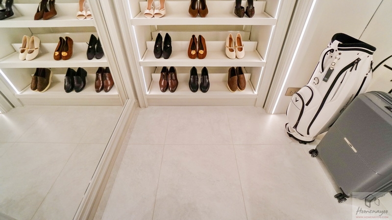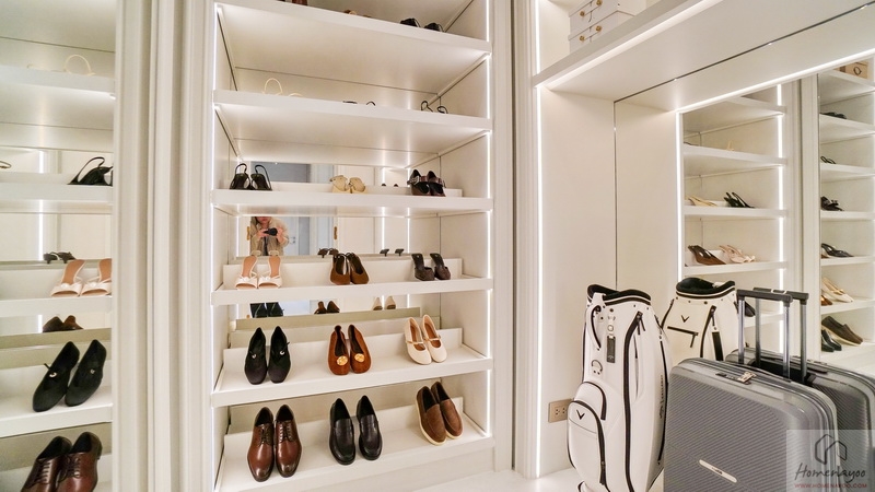 สำหรับห้องเก็บของบ้านตัวอย่างปรับฟังก์ชันการใช้งานเป็นห้องเก็บรองเท้าให้ดูเป็นไอเดีย ด้านในกว้างกำลังดีจุของได้เยอะ เพิ่มความโปร่งให้กับพื้นที่ได้ด้วยกระจกเงาบานใหญ่