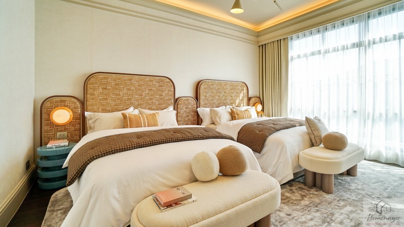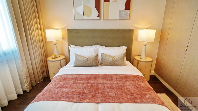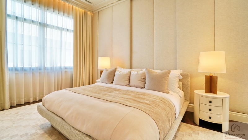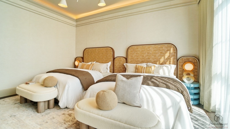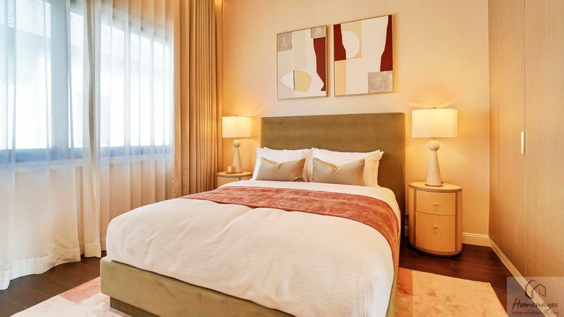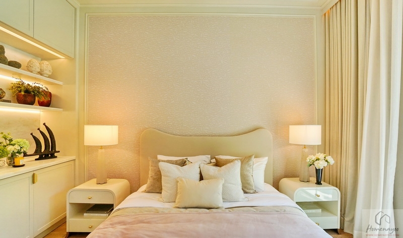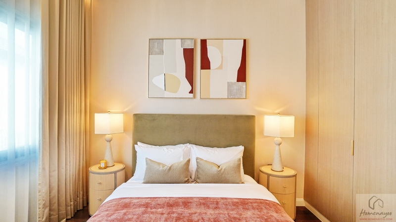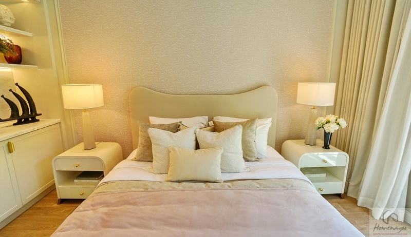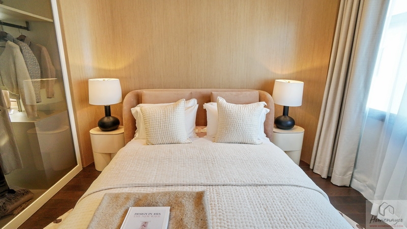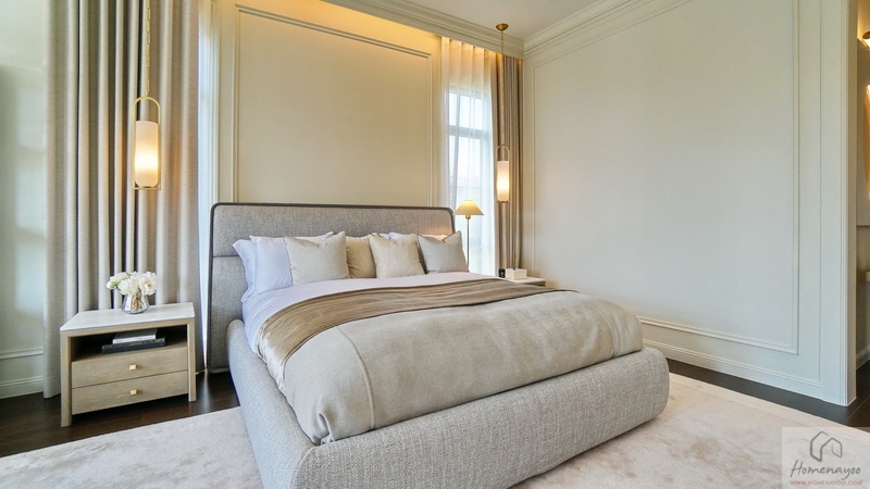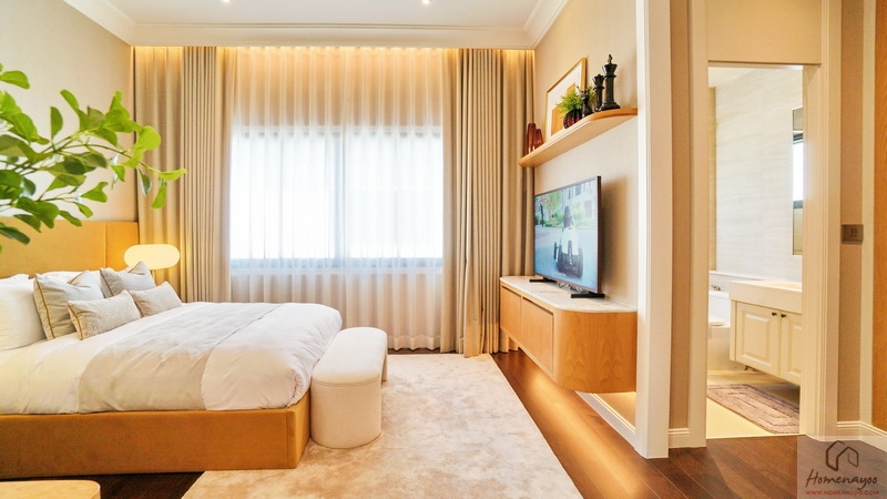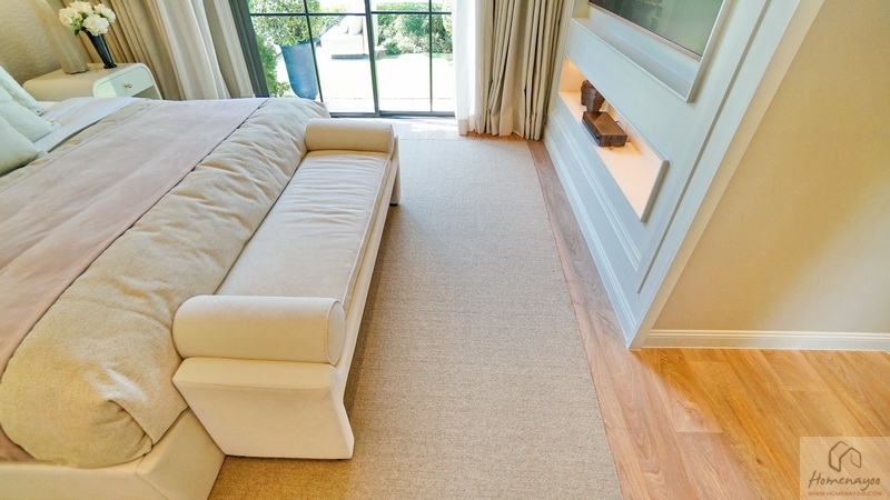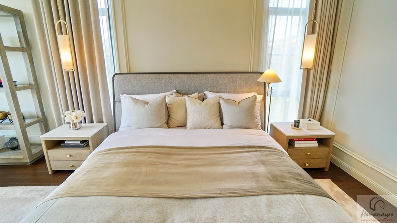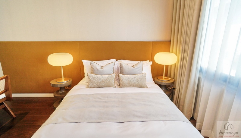 หากจัดเป็นห้องนอนก็วางเตียงขนาด Queen Size ได้สบาย ๆ พร้อมวางสตูลแนวยาวปลายเตียงได้อีก