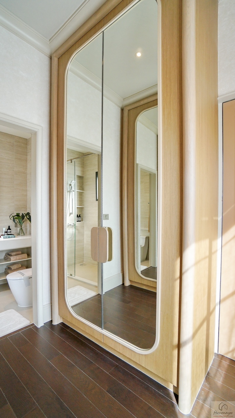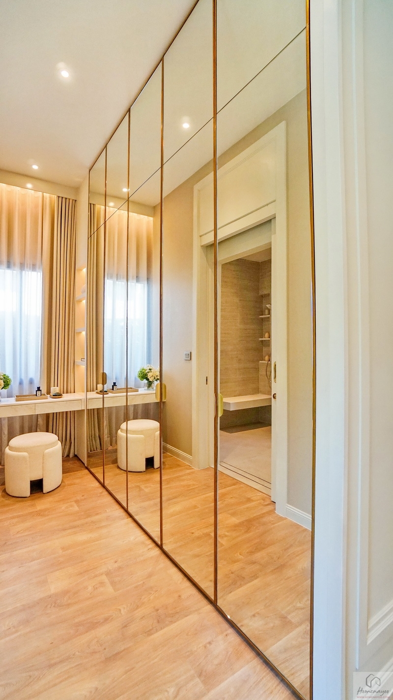 ด้านข้างฝั่งขวา Built-in เป็นตู้เสื้อผ้าทรงสูงหน้าบานกระจกเงาสวย ๆ