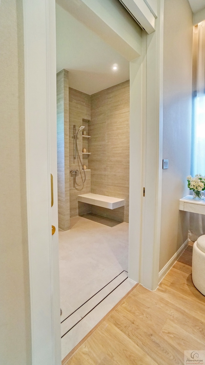 ไปต่อที่ห้องน้ำในตัวกันบ้าง ทางเข้าพื้นอยู่ในระนาบเดียวกับพื้นห้อง ผู้ใช้ Wheelchair หรือผู้สูงอายุสามารถเข้าใช้งานได้สะดวก