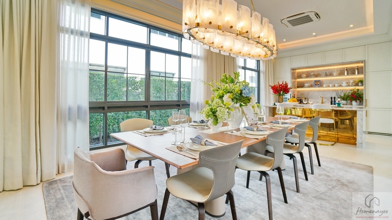 ถัดเข้าไปทางฝั่งหลังบ้านจัดเป็น Dining Area รองรับ Long Table ขนาด 8-10 ที่นั่งได้สบาย ๆ