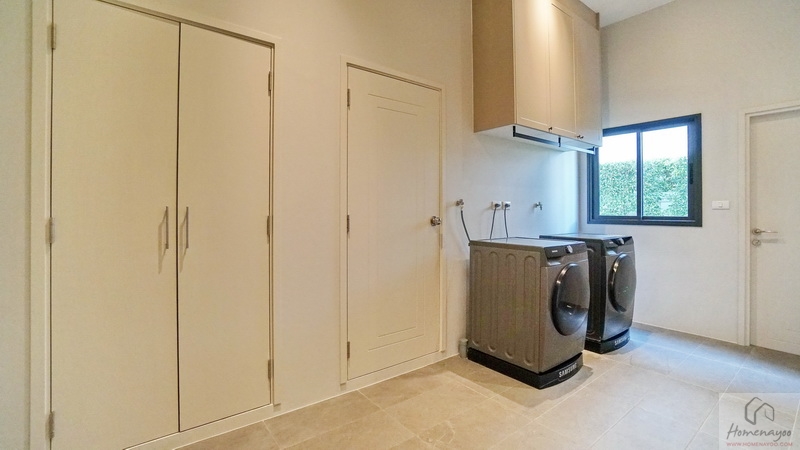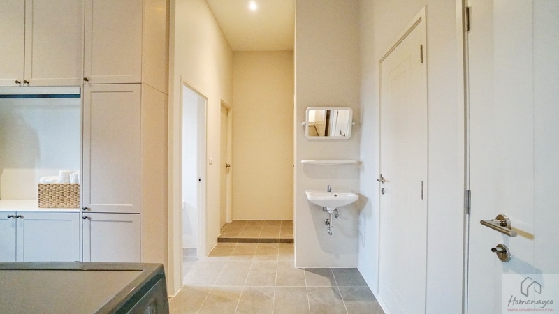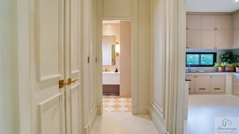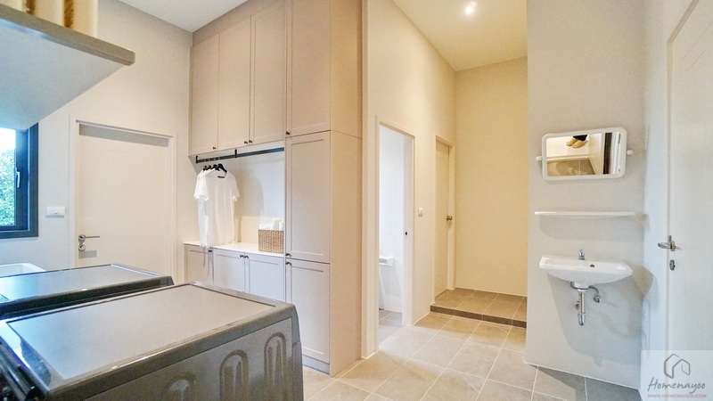 เดินต่อเข้าไปด้านในทางซ้ายที่เห็นจะเป็นห้องเก็บของขนาดใหญ่ ตรงกลางคือห้องน้ำชั้นล่าง ส่วนทางขวาจะเป็นห้องครัวไทยและ Service Zone