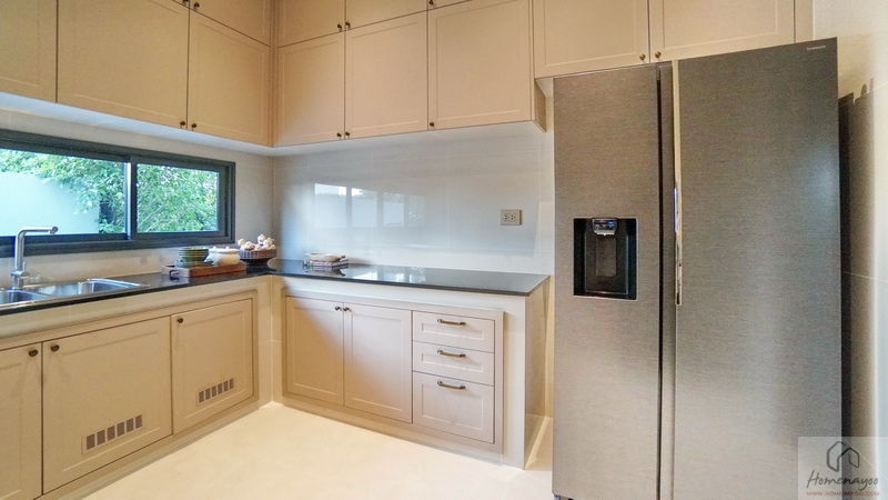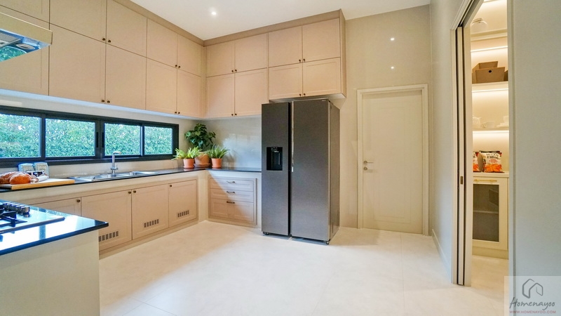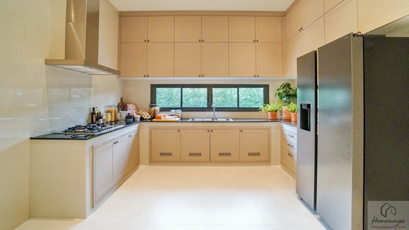 ไปดูในส่วนของครัวไทยกันต่อ พื้นที่ใช้งานกว้างขวางได้เป็นครัวปิดช่วยป้องกันกลิ่นและควันไม่ให้คลุ้งเข้าไปยังโซนพักผ่อน แบ่งฟังก์ชันใช้งานออกเป็น 2 ฝั่ง มีประตูเปิดเชื่อมกับ Service Zone