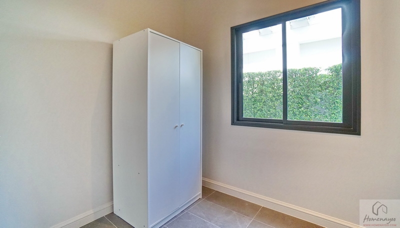 ส่วนอีกห้องจะมีขนาดเล็กลงมาหน่อย เหมาะนอนคนเดียวเพิ่มความเป็นส่วนตัวยิ่งขึ้น วางเตียงนอนขนาด 3 ฟุต พร้อมเฟอร์นิเจอร์อื่น ๆ ได้อีก 2-3 ชิ้น พร้อมมีหน้าต่างช่วยระบายอากาศให้ 1 ชุด